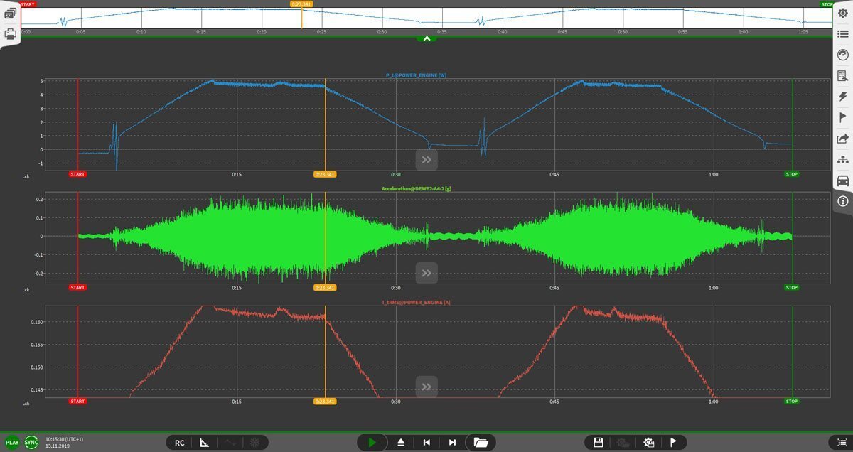 數(shù)據采集是OXYGEN的核心特性之一。它能夠從多個來源連續(xù)和同步采集數(shù)據:數(shù)字量,模擬量,計數(shù)器,編碼器,CAN,以太網,視頻,GPS,和其它更多信號…